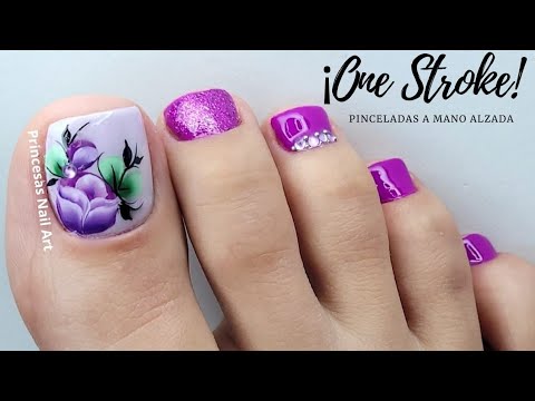 Have Beautiful Flowers With Brushed On The Nails Of The Feet In Purple Color Youtube